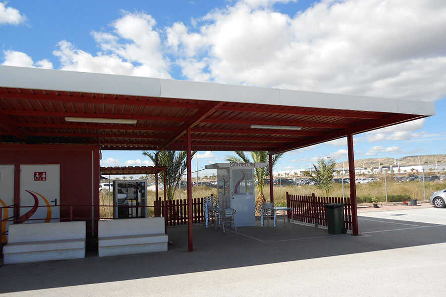 Cubierta especial para los clientes del parking low cost Aquacar en las proximidades del Aeropuerto Altet en Alicante.